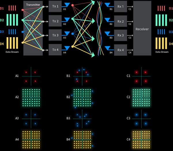 The essence of MIMO technology is to use multiple antennas to provide diversity gain (spatial diversity) and multiplexing gain (spatial multiplexing), the former to ensure the transmission reliability of the system, the latter to improve the transmission rate of the system. The essence of spatial diversity is to provide multiple independent fading copies of information symbols to the receiver to reduce the probability of signal deep fading, so as to achieve the purpose of improving system performance and improving transmission reliability and robustness. For MIMO systems, fading is independent between each pair of transceiver antennas, so MIMO channels can be regarded as multiple parallel spatial subchannels. Spatial multiplexing is to transmit different data on these independent parallel paths, thus greatly improving the channel capacity. Theoretically, the channel capacity of MIMO system can increase linearly with the increase of the number of transmitting and receiving antennas.